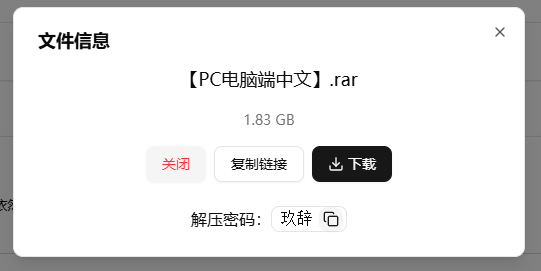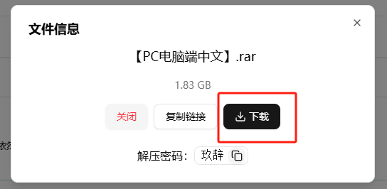 那可以看到,这个游戏提供了两种下载方式,一个是整体,一个是分卷步兵版,你可以根据描述判断一下你想要哪个版本,然后点击该按钮,弹出弹窗,此时我们就能看到【下载按钮】以及【解压密码】: