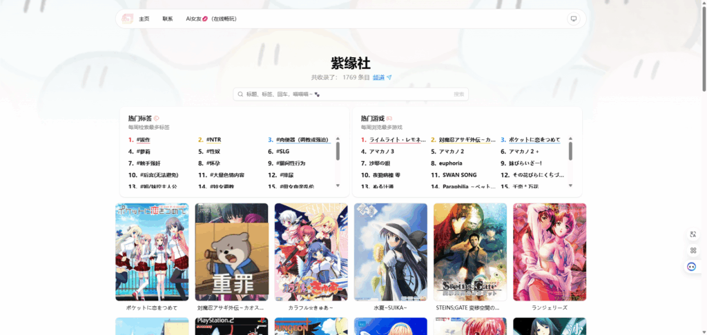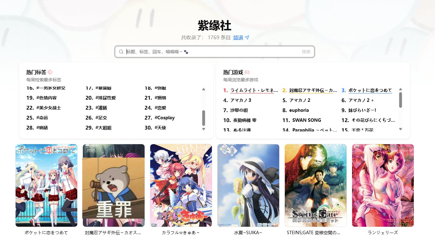 紫缘社是一个能免费提供 Galgame 游戏下载的资源型网站(紫缘两个字多半也是为了谐音“资源”吧),网站内收录了1000+的游戏资源,数量算是非常庞大,并且目前仍然在维持更新中,你可以在网站内查看到游戏的基础简介,在觉得感兴趣的情况下,就可以直接在线免费下载,整个网站使用流程都非常简单,基本上算是无广告了,我个人觉得还是值得收藏一下。