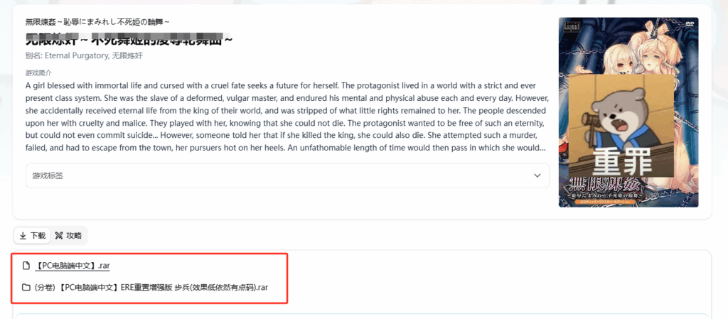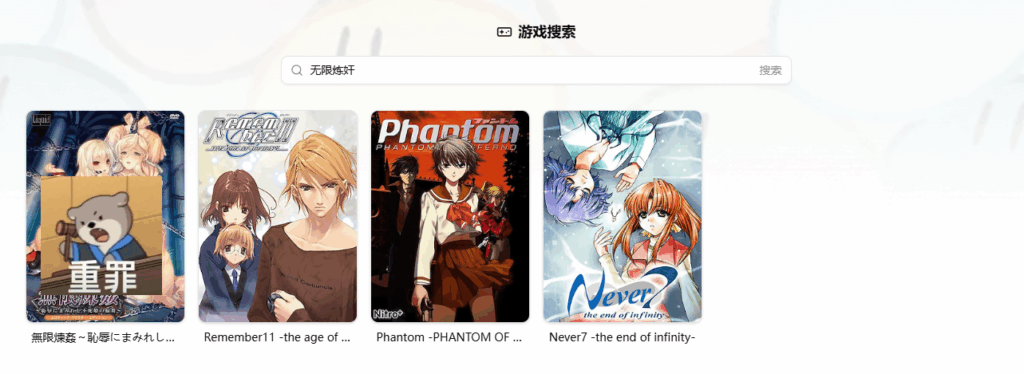 以一个具体的游戏为例,比如说我搜索《无限炼奸》: